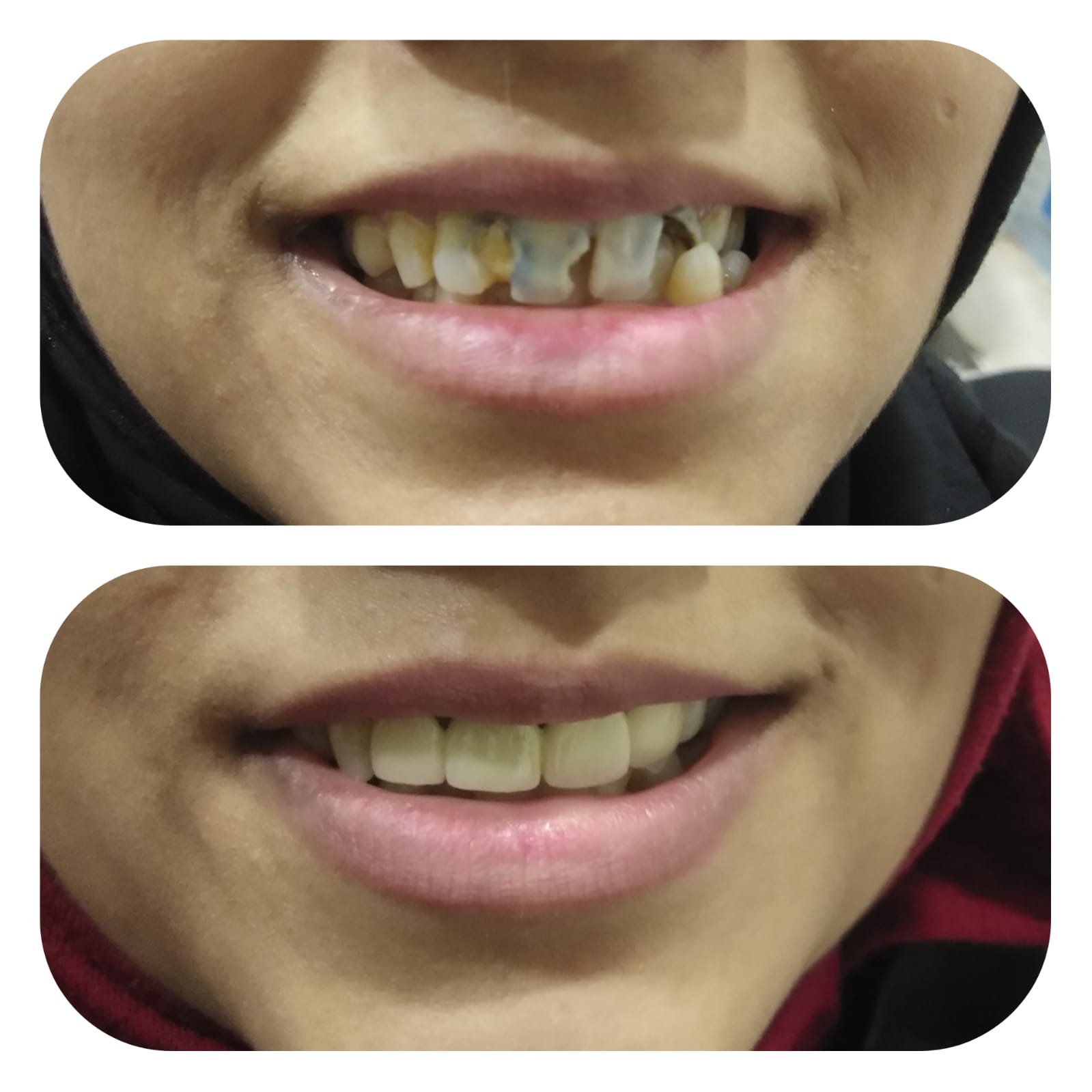 Teeth whitening is a simple process. Whitening products contain one of two tooth bleaches (hydrogen peroxide or carbamide peroxide). These bleaches break stains into smaller pieces, which makes the color less concentrated and your teeth brighter.